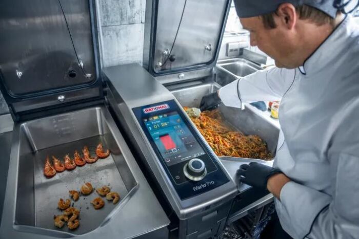 Dankzij iProductionManager combineer je moeiteloos verschillende gerechten. Wanneer mogelijk kook je ze tegelijkertijd, en als het proces wisselt – bijvoorbeeld van hete lucht naar stomen – schakelt de iCombi Pro automatisch over.